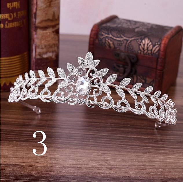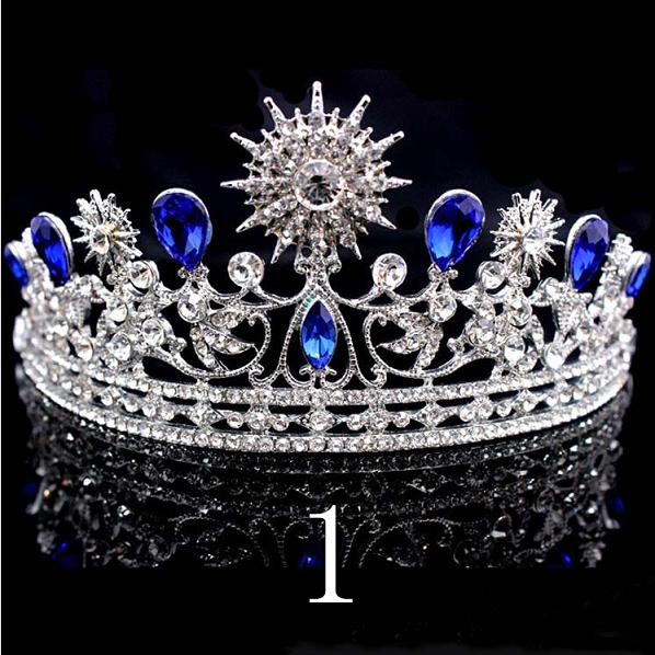 3 diseños de Tiara de cristal rojo, azul y verde para novia