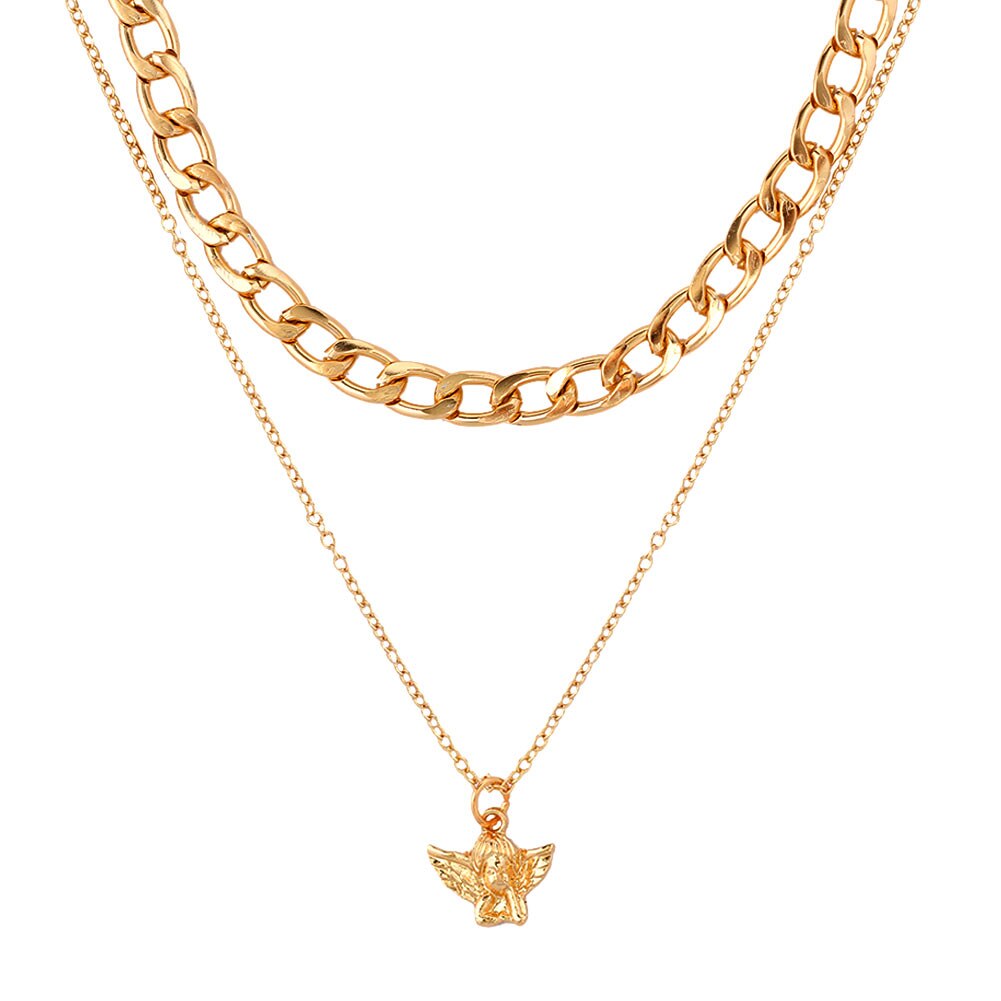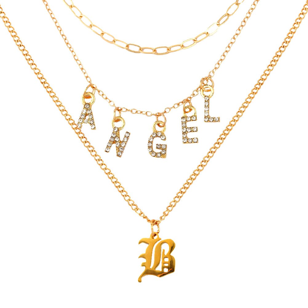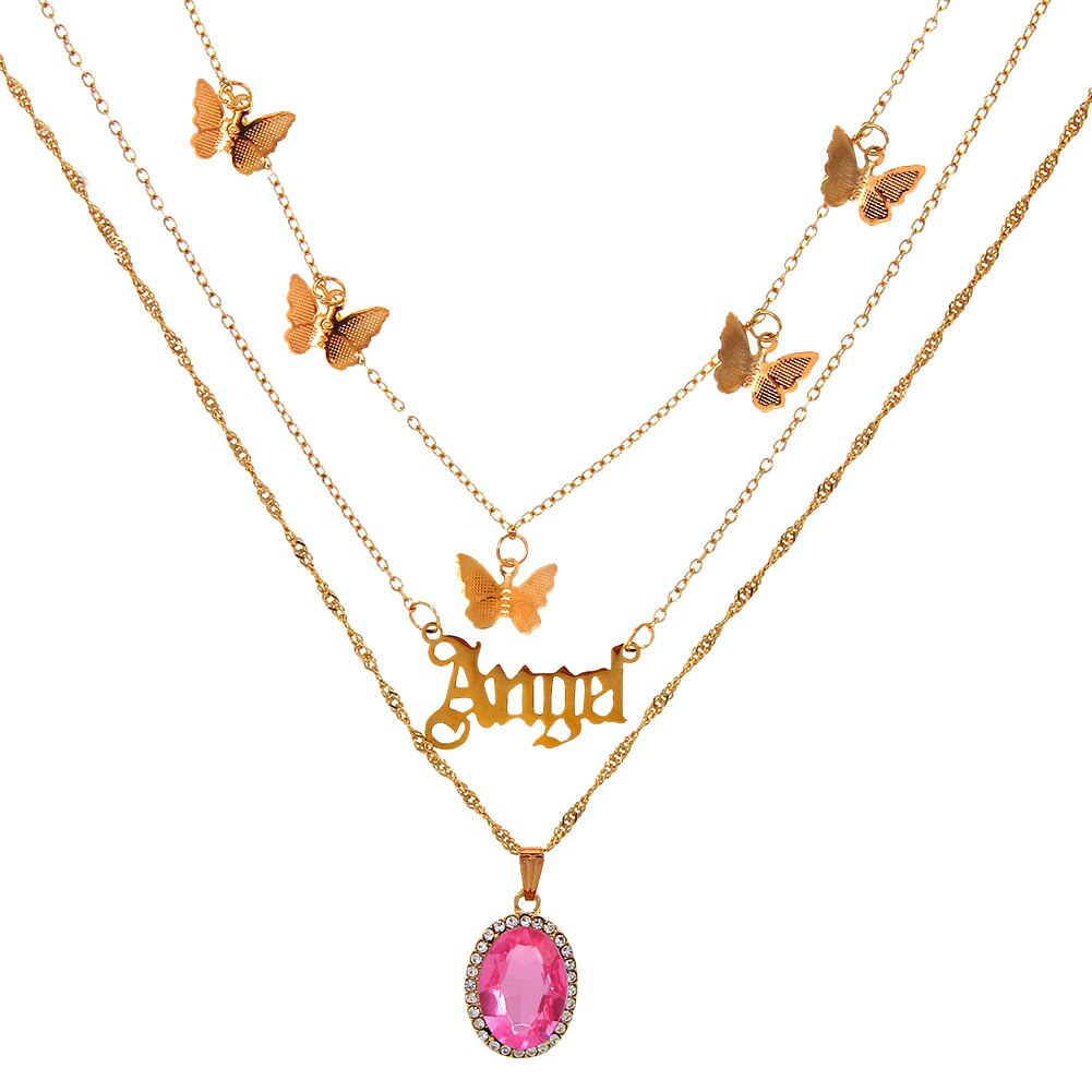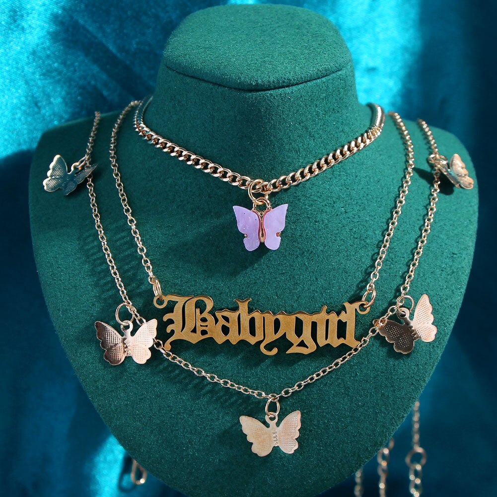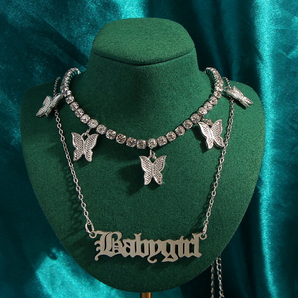 Collares de cristal multicapa con de mariposa y dragón para mujer, cadena de clavícula con letras de Ángel dorado Punk, joyería para de hip hop, novedad