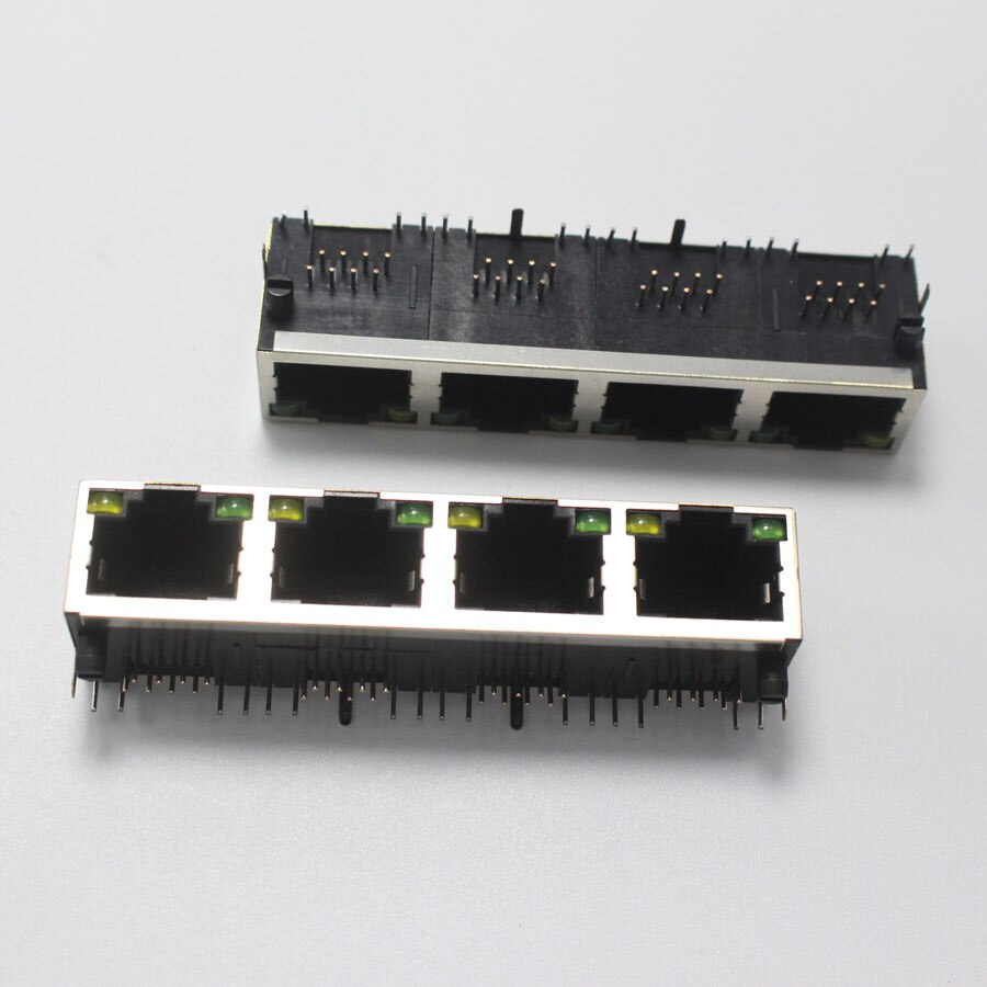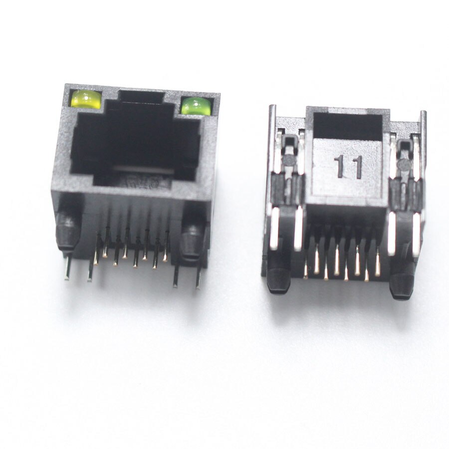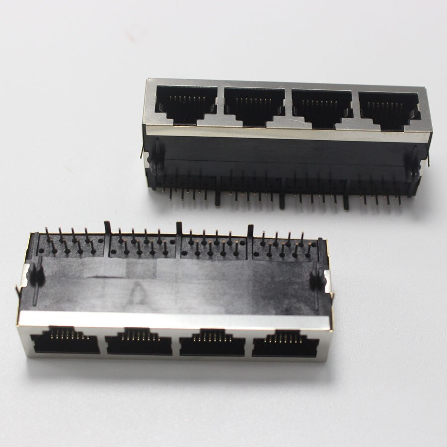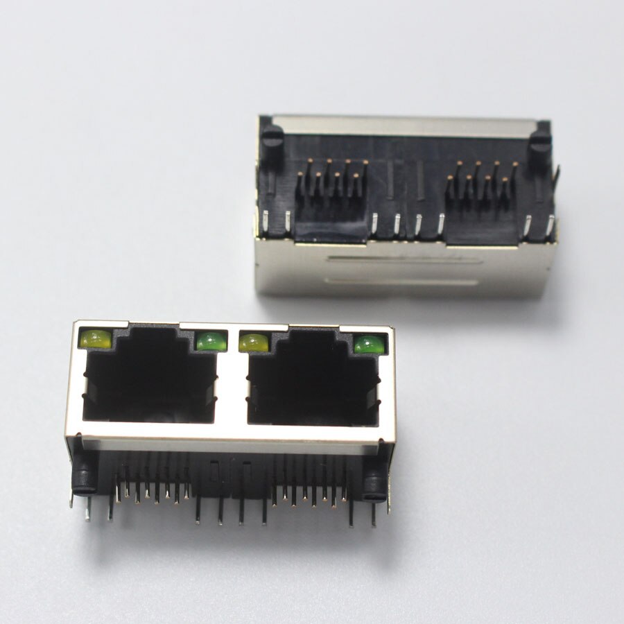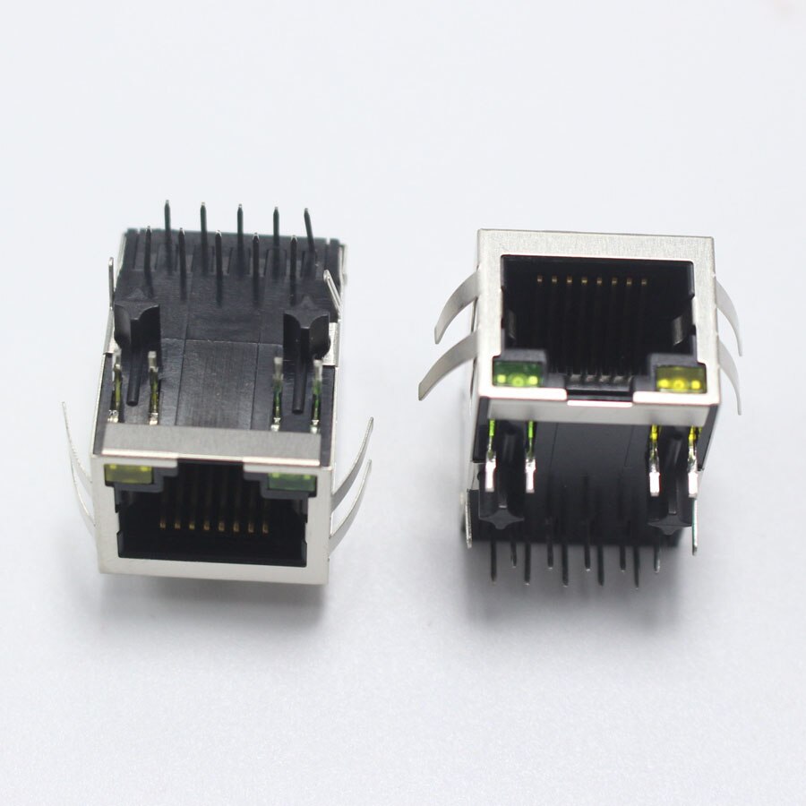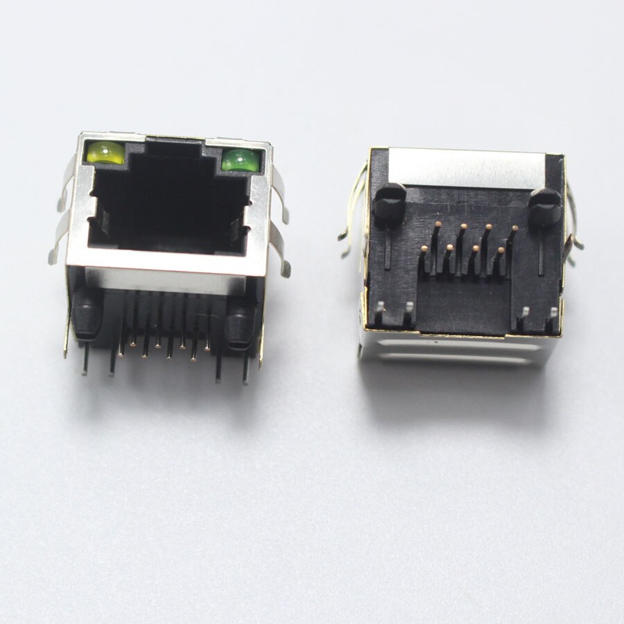 Conector de red Modular RJ45 8P8C, 1P, 2P, 4P, PCB, adaptador LAN Vertical 8P, conector DIP, Metal y plástico, 2 uds.