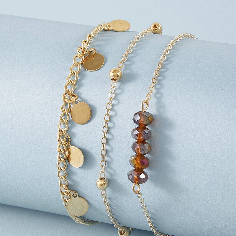 Docona-Conjunto de pulseras de aleación de Metal multicapa para mujer, brazalete bohemio de cristal y piedra media luna, corazón, hoja de árbol, joyería de boda, 9 estilos