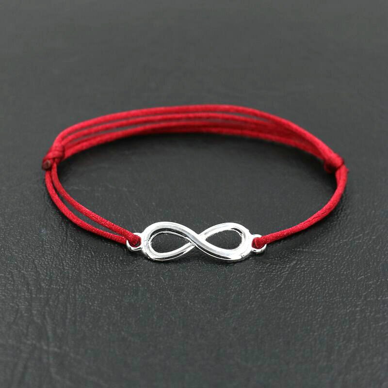 Pulsera con abalorios de circonia cúbica Infinity 8 para hombre y niña, cuerda de hilo de cuerda roja, pulseras para parejas, para niños y mujeres