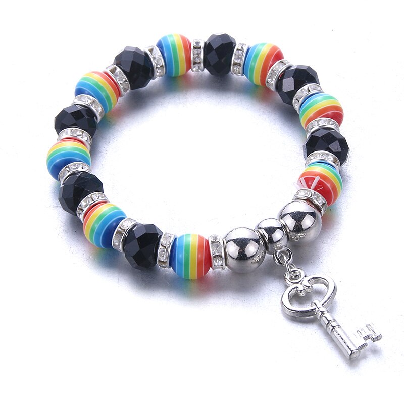 Pulsera con abalorios elásticos para niño y niña, brazalete con cuentas de colores, arcoíris, joyería fina